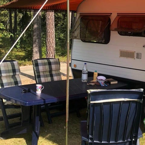 Camping bord for barna selges med blå farge. Rødt farge er bare bildet hvordan den ser ut, lignende.