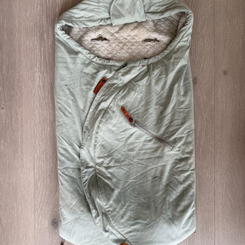 Easygrow vognpose i grønn farge. Vognposen har mykt, lyst innerfôr og ytterstoff i glatt materiale. Den lukkes med glidelås og har åpning til sele slik at den kan brukes i barnevogn. Passer fint til både vår, sommer og tidlig høst. Med forlengerdel.