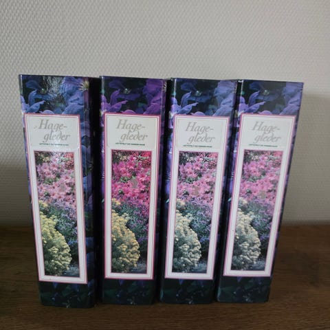Den store hageboken er en bok som inneholder informasjon om hagearbeid, planter og hagedesign. Boken har et omslag med bilder av blomster og hager, og gir veile