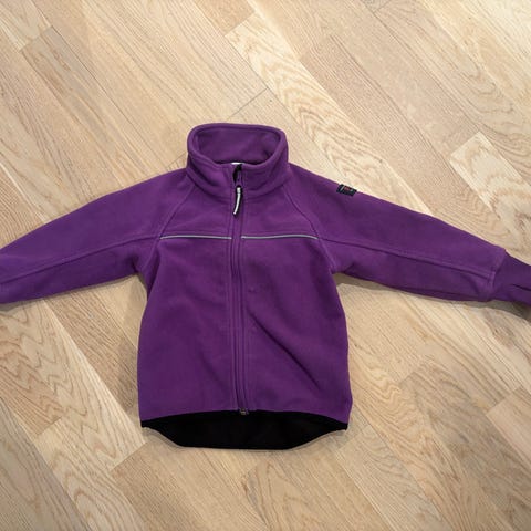 KappAhl fleecejakke for barn i størrelse 116. Jakken er i myk fleece i lillafarge og er laget. Den har glidelås i front, høy krage og to lommer foran. Egner seg som mellomlag eller lett ytterlag på kjølige dager. Vind- og vanntett stoff med 5000 mm vannsøyle.
