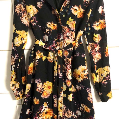 Selected Femme sommerkjole for dame i størrelse 38. Kjolen er laget i polyester og har et flerfarget blomsterprint på mørk bunn. Ermeløs modell med rund hals og lett utsvingt skjørt. Stoffet er lett og faller mykt, med fôret underdel for bedre komfort og mindre gjennomsiktighet. Egnet til bruk på varme dager, ferier og andre anledninger der en luftig sommerkjole passer.