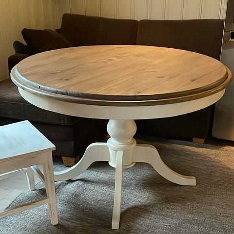 Spisebord med ileggsplate. Lite og pent brukt. Noen få små bruksmerker.Ca 1.5 år gammelt.