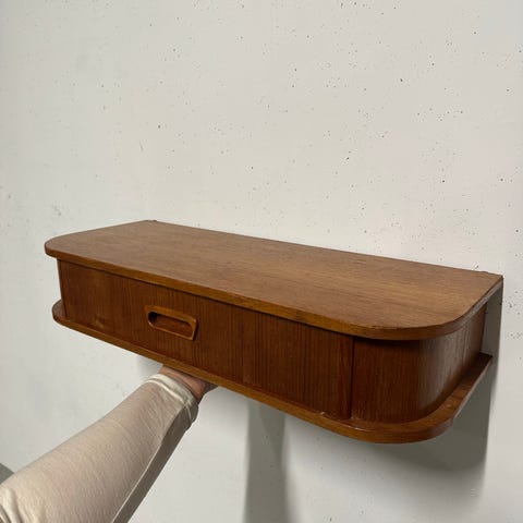 Vintage vegghengt nattbord i teak - Talgøs møbelfabrikk