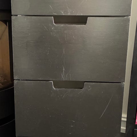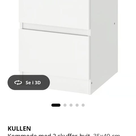 NORDLI kommode med 3 skuffer fra IKEA. Kjøpt for ca 5 år siden til 1600 og er godt brukt. Noen ikke så synlige bruksmerker bortsett fra en skrap på forsiden av den øverste skuffen (se bilde). Men ellers funker som den skal. Må hentes i 4. etasje uten heis, fint om du tar med bærehjelp da jeg ikke har mulighet!