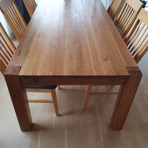 En stor fordel med dette bordet er at bena er plassert helt ytterst, også når bordet er utvidet. Dette gir bedre sittekomfort og mer plass til beina.