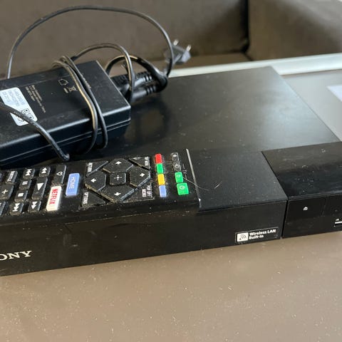 På baksiden finnes HDMI-utgang, koaksial digital lydutgang, analog stereo RCA-utgang og nettverksport (Ethernet). Spilleren kan kobles til internett for tilgang til strømmetjenester som Netflix og YouTube, avhengig av tilgjengelige apper og tjenester.