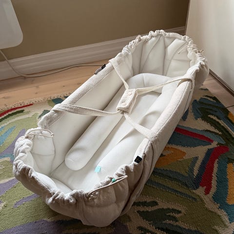 Ble brukt når vi lå på sykehuset og et par ganger hjemme i sofaen i starten. Har siden stått lagret.