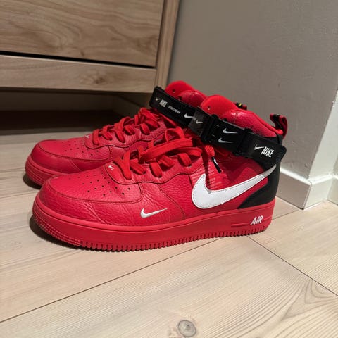 Selger et par stilrene Nike Air Force 1 i helrød farge. Klassisk modell som passer til det meste!