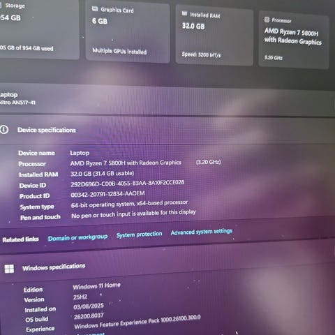 RTX 3070, 32gb ram, Ryzen 7 5800H, 1tb SSD.