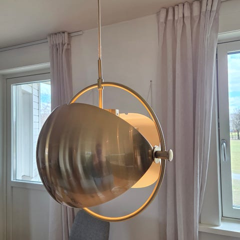 Flott designlampe i messing og svart til en svært god pris. Den har noen bruksmerker, se bilder.