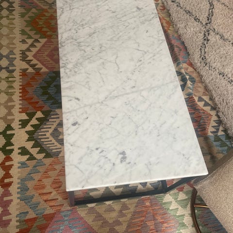 Nydelig salongbord i ekte marmor. Tungt og solid. Noen bruksmerker, men ellers helt fin. Ca 5 år gammelt.