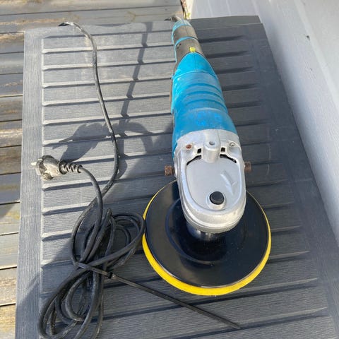 Elektrisk poleringsmaskin med håndtak og ledning. Maskinen har rund polerskive med avtakbar polerpute i tekstil/skum. Egnet til polering av glatte overflater som for eksempel lakk og andre harde materialer. Strømtilkobling med vanlig støpsel for innendørs bruk.