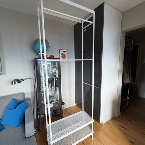 Den er ikke brukt mye så første som kommer med bra bud kan hente den. Perfekt til jakker og oppbevaring av sko og andre ting til gangen.
