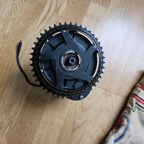 Dette er en krankmotor (også kalt sentermotor) til en elsykkel.