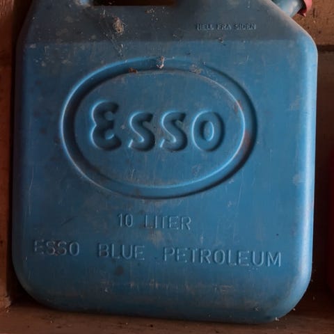 BP og Esso gamle oljekanner i metall. . Egner seg kanskje som samlerobjekter eller dekor, for eksempel i garasje, verksted eller som retro interiørdetaljer.