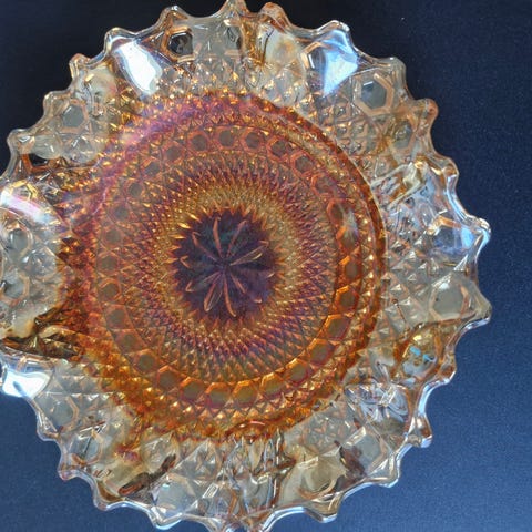 Så pen gammel skål. Oragne i farven og med mønster over det hele.