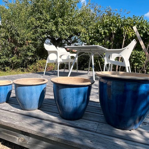 House Doctor krukkesett med 2 krukker i grønn farge. Krukkene har blank overflate og sylinderform med sokkel. Egnet til bruk både inne og ute, for eksempel på terrasse, balkong eller i hage. Passer til ulike typer planter og busker. Produsert i et materiale som tåler utendørsbruk, men det anbefales å bruke innlegg eller plassere krukkene på et underlag for å beskytte overflaten. Høyde 31 cm, diameter 30 cm.