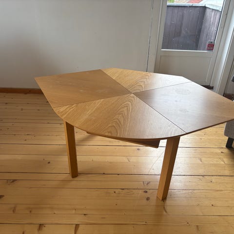 Bordet selges ferdig montert og må hentes.