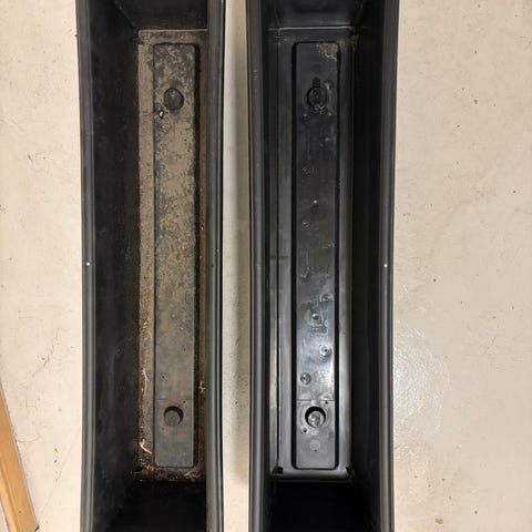 Stativ, kasser og oppheng. Stativ 90 cm x 18 cm. Innvendig mål kasse 85 cm x 18 cm.
