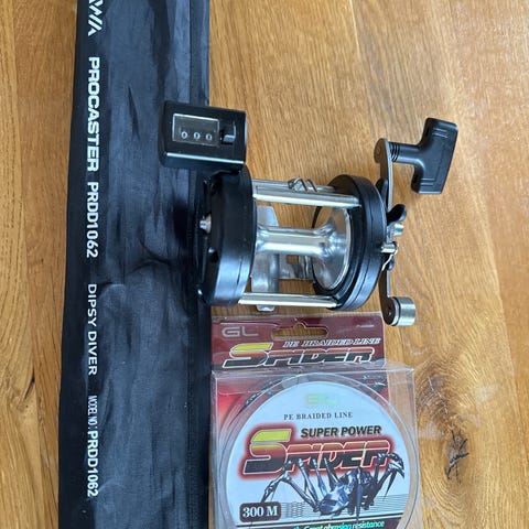 Snellen er rigget ferdig med ca 500 meter med 0,42 mm Daiwa multicolor J-Braid x8 line med bruddstyrke på 46,5 kg.