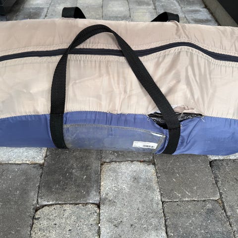 Oppblåsbar kajakk. Aldri brukt eller utpakka fra veska. Sjølve veska har nokre rifter etter lagring. Søk på nettet, så finn du meir informasjon. Kan sendast, men må sjekke meir om kva det kostar.