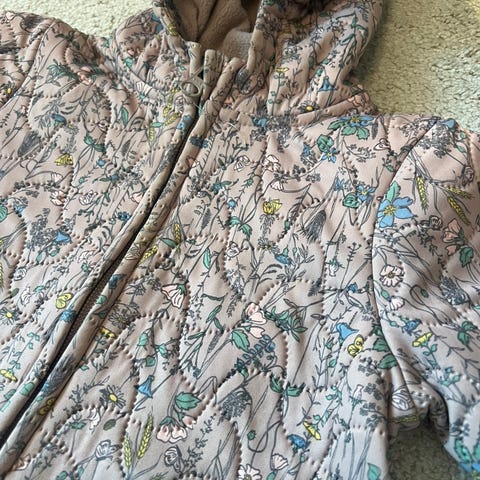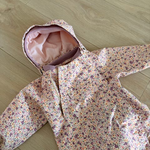 Brukt av ett barn. Praktisk og god å ha på. Ene strikken har røket under, ellers ingen skader.