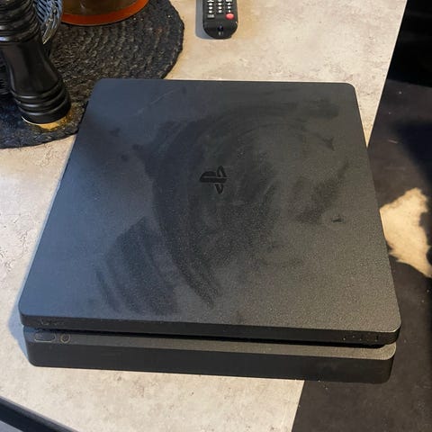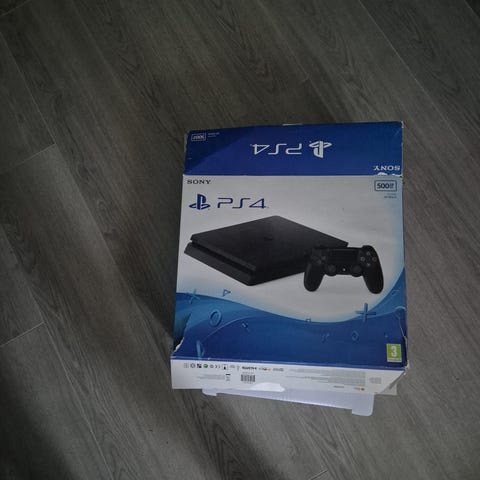 Sony PlayStation 4 konsoll med to trådløse DualShock 4-kontrollere i svart. Inkludert ps4 camera. Medfølgende spill på PS4-format: LEGO Batman 3: Beyond Gotham og FIFA 23.
