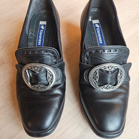 Pent brukt bunadsko av merket Klaveness. Størrelse 38,5.