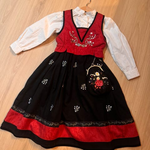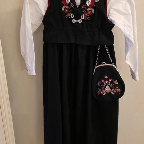 Veske, hårbøyle og ubrukt forkle følger også med.