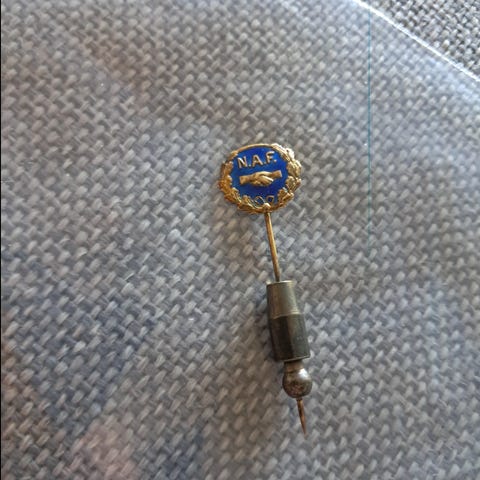 Merket har klassisk design med ørn, krans og hurtigbåt (S-boot). Fremstår i gullfarge med synlig patina og slitasje som vist på bilder. Nålen på baksiden er intakt.