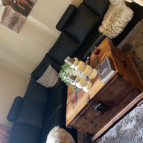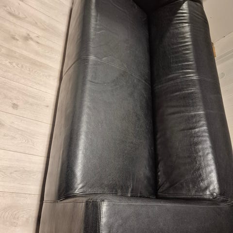Godt brukt Ikea skinnsofa. Med kloremerker fra katten.