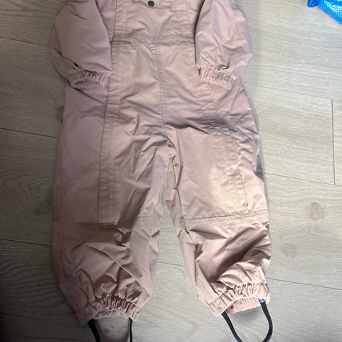 Selger en Nordbjørn tynn parkdress. Den er uten fôr og super på våren. Den har litt slitasje på knær og rumpe, samt noen løse tråder, men jeg har ikke funnet noen hull. Har funnet et par små flekker som ikke har gått bort i vask. Strikkene under føttene er slitt i stykker og derfor tatt av. Det er knapper til å feste nye strikker om ønskelig.