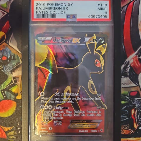 Pokémon Charizard samlekort innkapslet og gradert av PSA. Kortet er fra Pokémon TCG og er oppbevart i hard plastkapsel med PSA-etikett. Egnet for samlere av Pokémon-kort og som utstillingsobjekt i samling.