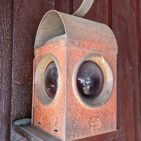 Gammel lampe i kobber trolig til båt eller noe sånt, må pusses opp og skite glass