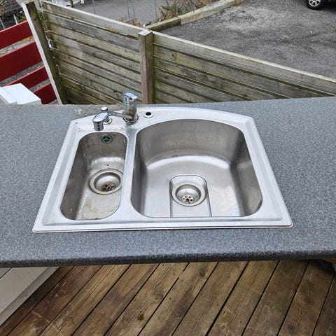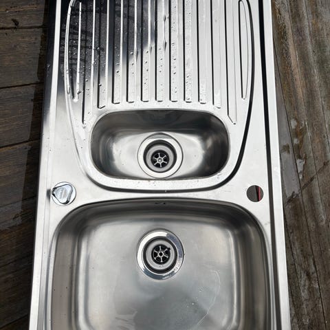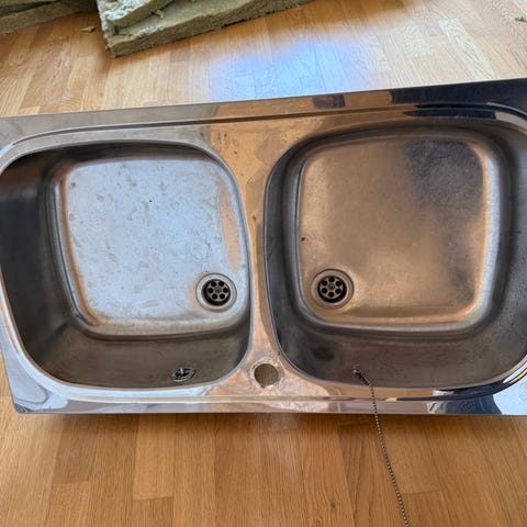 Kjøkkenvask i stål. Med kjøkkenbatteri.RESERVERT