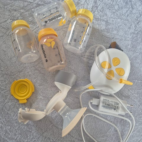 Pent brukt Medela Solo elektrisk brystpumpe med tilbehør.