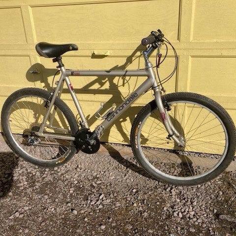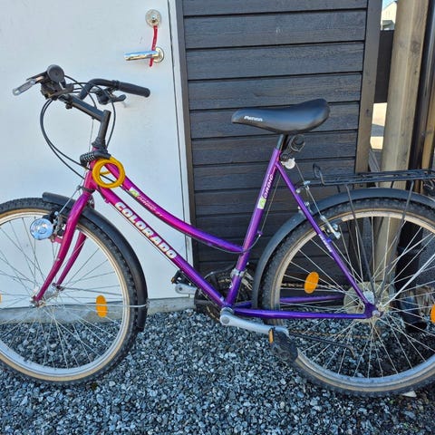 Hjulstørrelse: Den ser ut til å ha 26-tommers hjul, som er vanlig for eldre terrengsykler eller større barnesykler.