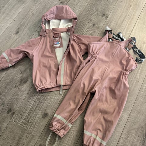 Pent brukte regnklær fra Reflex. Tynt fleecefor og fleecekrage.
