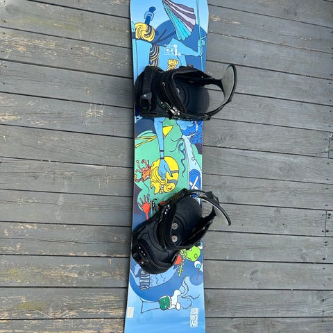 Cycore 98 snowboard med bindinger og tilhørende snowboardstøvler.