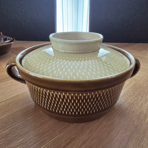 Stavangerflint Flammetind gryte brun keramikk med lokk