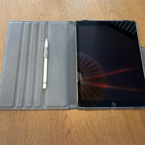 Skjermen er i svært god stand, omtrent ingen bruksmerker. iPaden er generelt i veldig god stand.