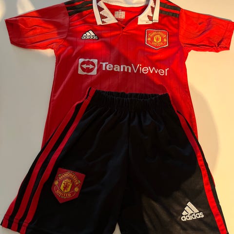 Arsenal fotballdraktsett for barn i størrelse 146. Settet består av kortermet fotballtrøye og shorts i rødt og hvitt. Trøyen har klubbens logo og sponsortrykk foran, samt navn og nummer 8 på ryggen. Shortsen er hvit med røde detaljer og nummer 8 på det ene benet. Egnet til bruk til fotball og annen fysisk aktivitet.