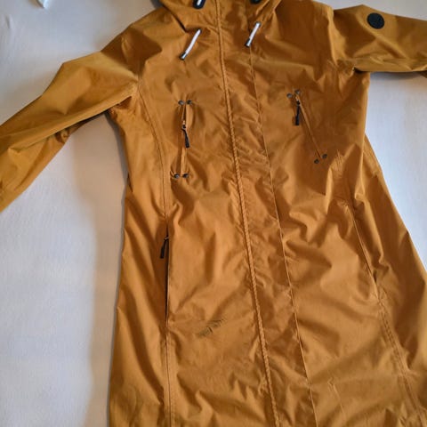 Stormberg parkas. Vind/vanntett. Sennepsgul farge. Store gode lommer. Glidelåsåpning under begge armene. Justering nede på jakken. Stor god hette med justering. Aldri vært tatt i bruk pga feil størrelse. Prislappen henger på.