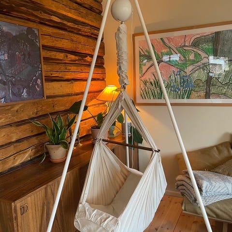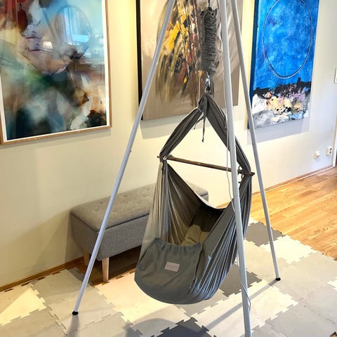 Selger også egen Moonboon Hengevugge. Se egen annonse. Fjæropphenget er ubrukt og hengevuggen er lite brukt. Nypris: 2600,-. Selger for 1250,-