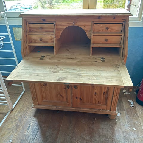 Sekretærskrivebord/Skattoll i furu med overskap og skuffer