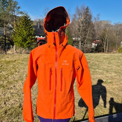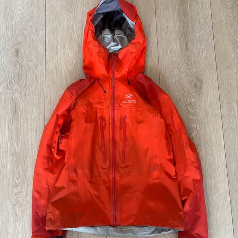 Rød Arcteryx Alfa jakke, pent og svært lite brukt selges. Jakken er blitt for stor, og befinner seg i Trondheim. Den er vindtett og vanntett, og passer til helårsbruk.