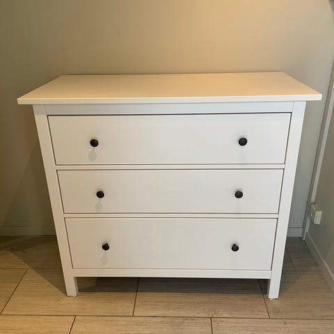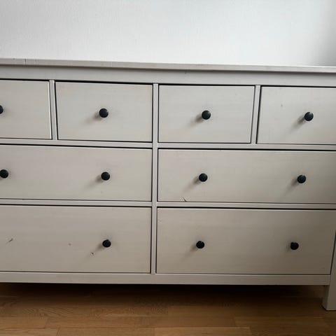 Brukt kommode men fortsatt mye igjen. En synlig feil bak på den ene kommoden og en synlig feil foran på den andre. Men skuffene og toppen er fine.
