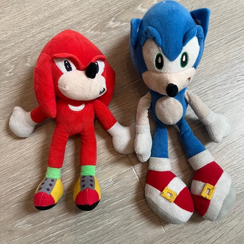 Selger 2 Pokémon bamser, 2 mellom store adopt me bamser, 2 småe adopt me bamser, bendy from the ink machine bamse, 2 store tail og sonic bamse og 2 små shadow the hedgehog bamser!