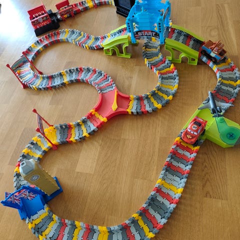 Pent brukt bilbane, kjører av seg selv, men kan enkelt bygges om. Var veldig populært til hytten hjem her.