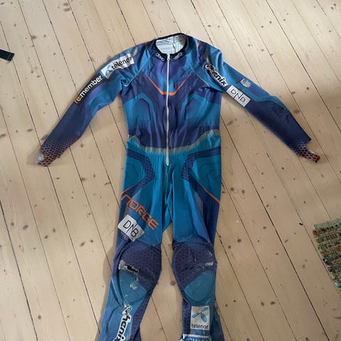 Phenix alpint fartsdress DH i unisex størrelse L , fra sesong 12/13.Heldress med tettsittende passform, glidelås foran og lange ermer og ben. Fargekombinasjon hovedsakelig svart med gule og hvite detaljer samt trykte logoer. Laget i elastisk materiale som gir god bevegelighet.